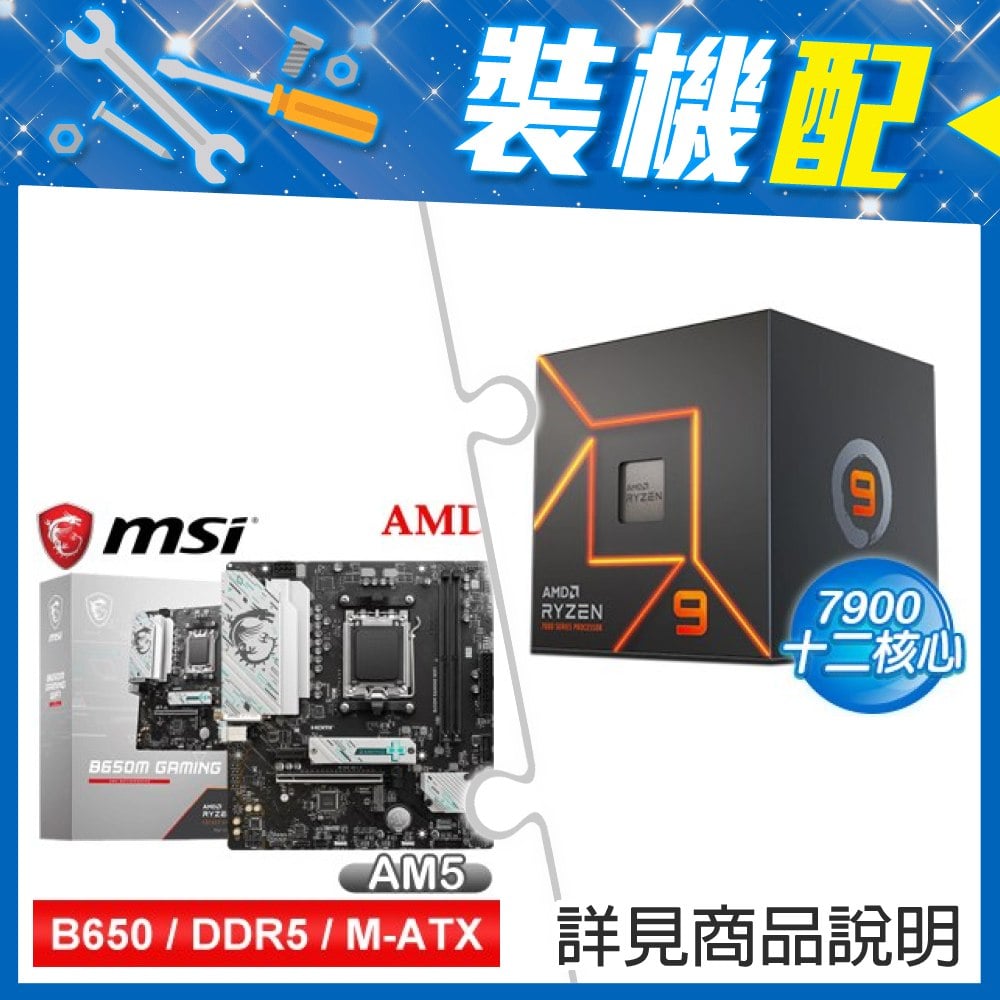 ☆裝機配★ AMD R9 7900+微星 B650M GAMING WIFI M-ATX主機板