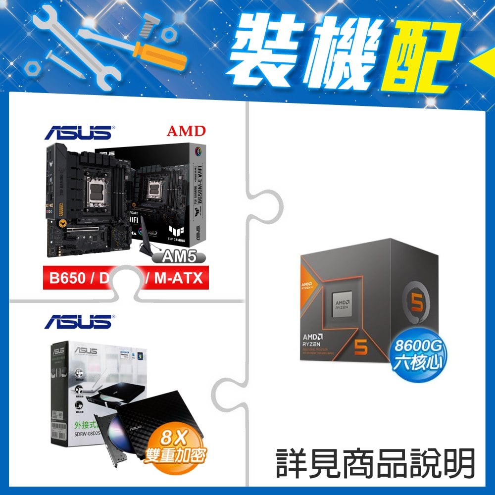 - ☆裝機配★ AMD R5 8600G+華碩 TUF GAMING B650M-E WIFI D5 MATX主機板+華碩 SDRW-08D2S-U 外接式燒錄機《黑》- $10788