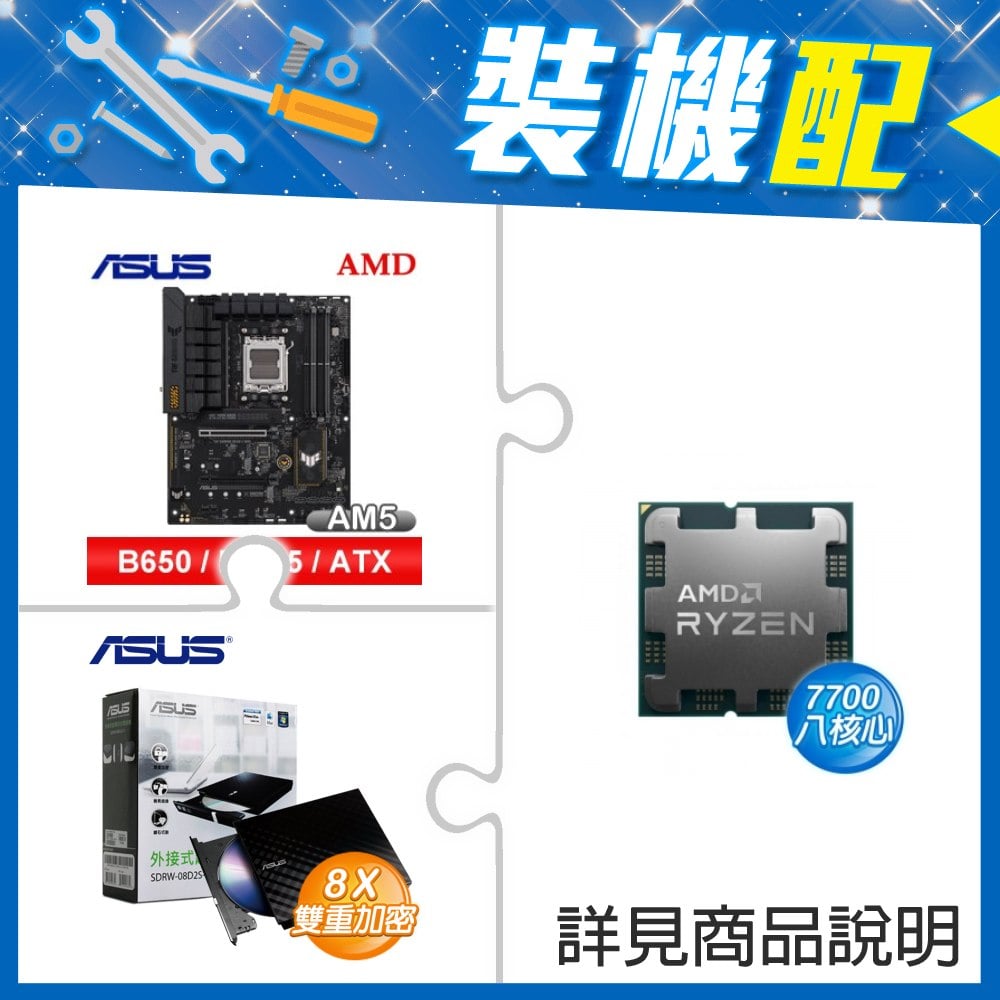 ☆裝機配★ AMD R7 7700 MPK+華碩 TUF GAMING B650M-E WIFI D5 MATX主機板+華碩 SDRW-08D2S-U 外接式燒錄機《黑》