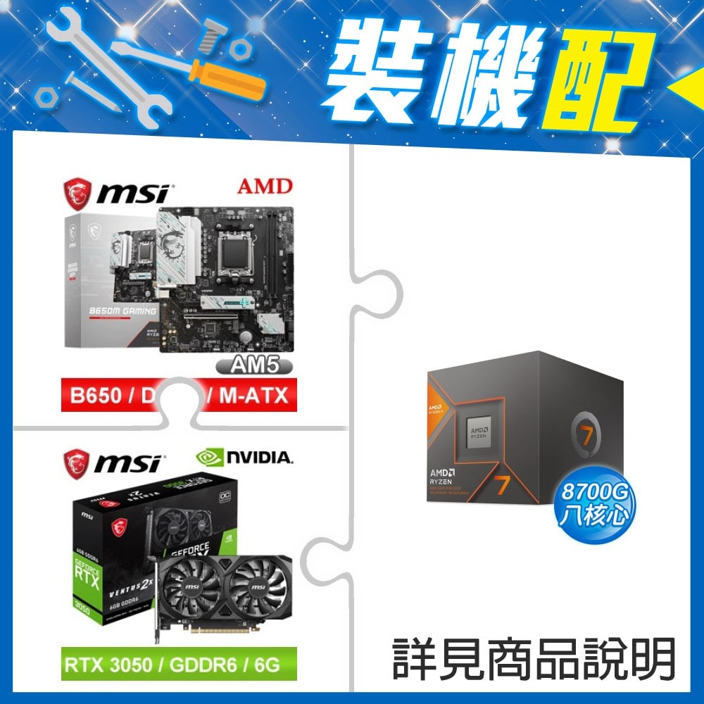 ☆裝機配★ AMD R7 8700G+微星 B650M GAMING WIFI M-ATX主機板+微星 RTX 3050 VENTUS 2X 6G OC 顯示卡