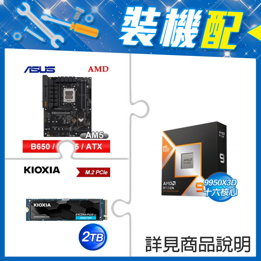 ☆裝機配★ AMD R9 9950X3D+華碩 TUF GAMING B650-E WIFI ATX主機板+鎧俠 EXCERIA PLUS G3 2TB PCIe Gen4x4 SSD