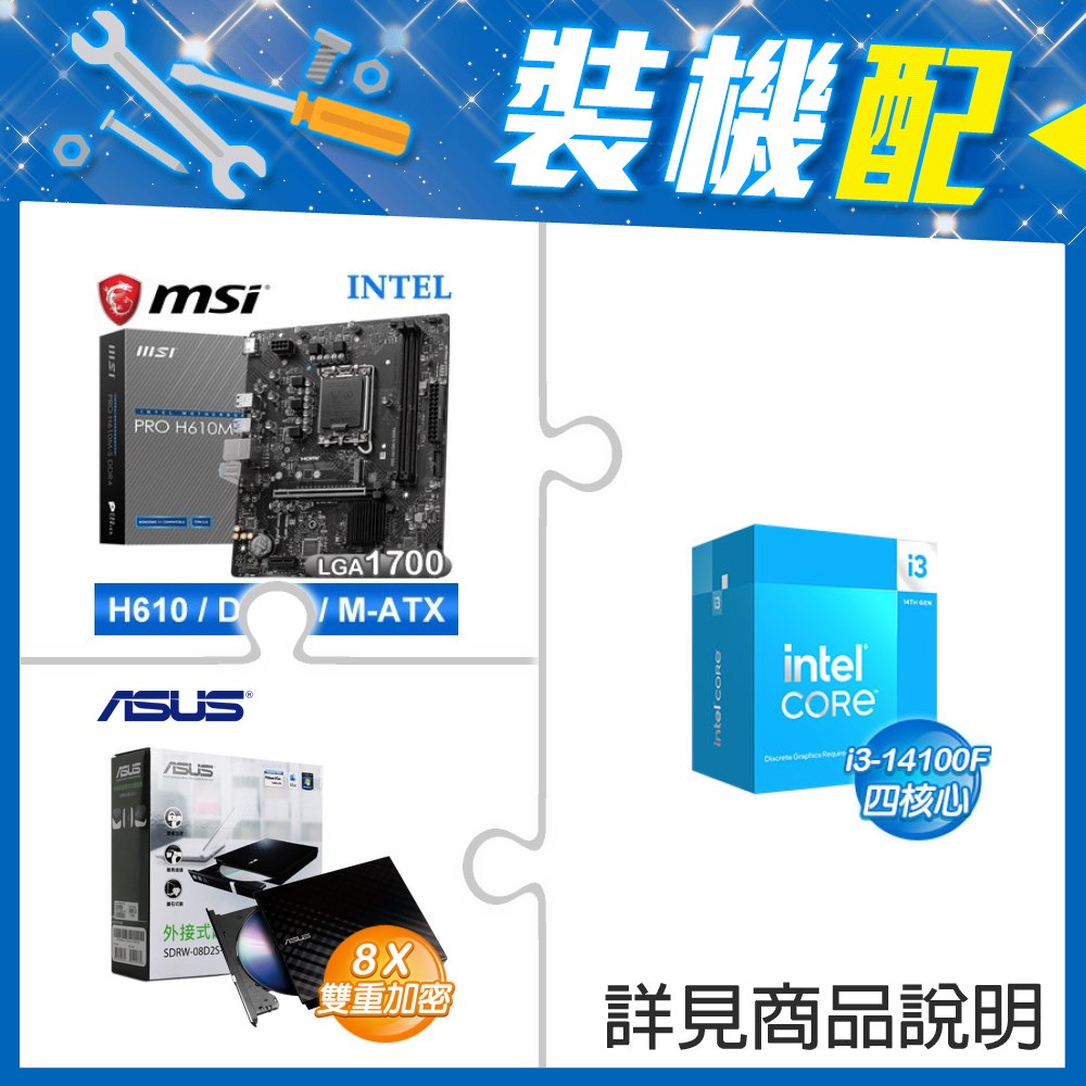 ☆裝機配★ i3-14100F+微星 PRO H610M-S D4 M-ATX主機板+華碩 SDRW-08D2S-U 外接式燒錄機《黑》