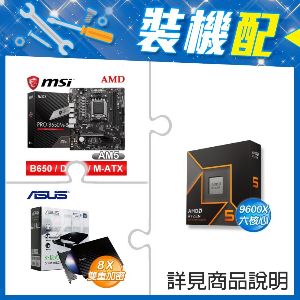 ☆裝機配★ AMD R5 9600X+微星 PRO B650M-B M-ATX主機板+華碩 SDRW-08D2S-U 外接式燒錄機《黑》