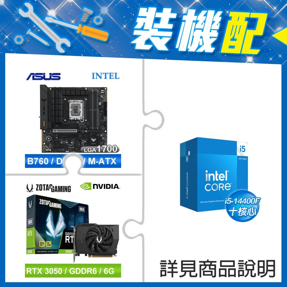 ☆裝機配★ i5-14400F+華碩 TUF GAMING B760M-PLUS WIFI II D5 MATX主機板+ZOTAC RTX3050 6G GDDR6 Solo 顯示卡