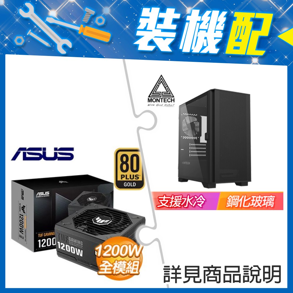 ☆裝機配★ MONTECH【AIR 100 LITE】玻璃透側 M-ATX機殼《黑》+華碩 TUF GAMING 1200G 金牌 全模組 ATX3.0(PCIe 5.0)