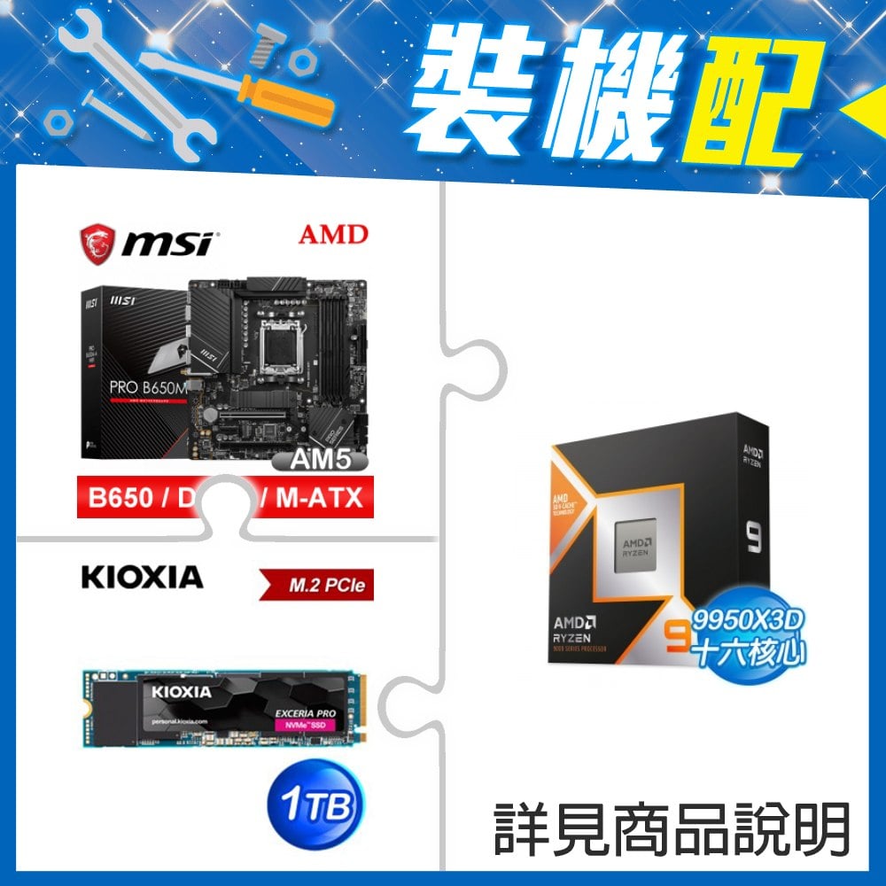 ☆裝機配★ AMD R9 9950X3D+微星 PRO B650M-A WIFI D5 M-ATX主機板+鎧俠 EXCERIA PRO 1TB PCIe Gen4x4 SSD