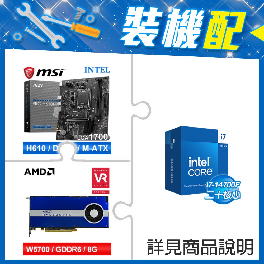 ☆裝機配★ i7-14700F+微星 PRO H610M-S D4 M-ATX主機板+AMD RadeonPro W5700 8G 256bit專業繪圖卡