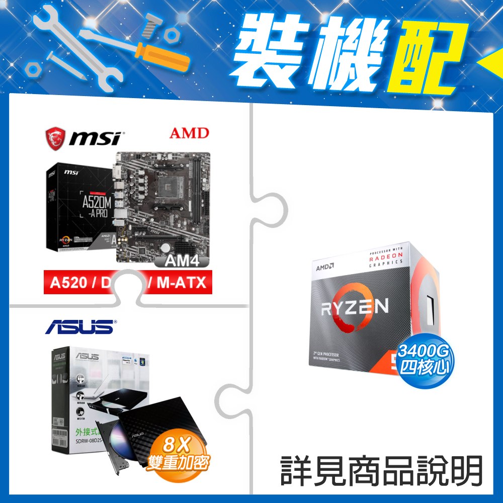 ☆裝機配★ AMD R5 3400G+微星 A520M-A PRO M-ATX主機板+華碩 SDRW-08D2S-U 外接式燒錄機《黑》