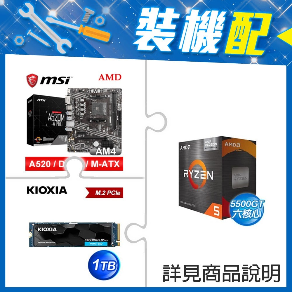 ☆裝機配★ AMD R5 5500GT+微星 A520M-A PRO M-ATX主機板+鎧俠 EXCERIA PRO 1TB PCIe Gen4x4 SSD
