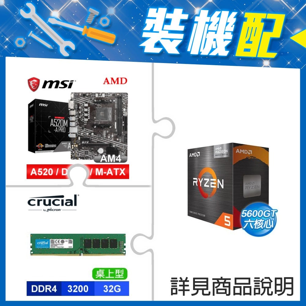 ☆裝機配★ AMD R5 5600GT+微星 A520M-A PRO M-ATX主機板+美光 DDR4-3200 32G 記憶體