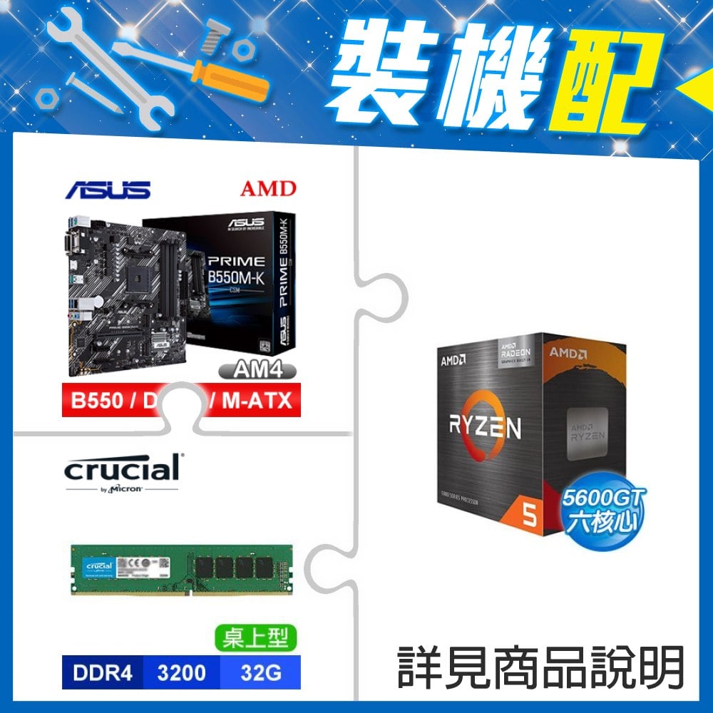 ☆裝機配★ AMD R5 5600GT+華碩 PRIME B550M-K CSM M-ATX主機板+美光 DDR4-3200 32G 記憶體