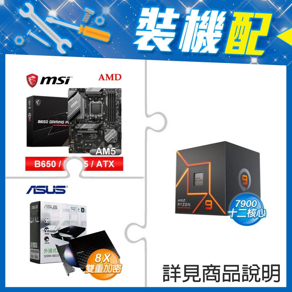 ☆裝機配★ AMD R9 7900+微星 B650 GAMING PLUS WIFI D5 ATX主機板+華碩 SDRW-08D2S-U 外接式燒錄機《黑》