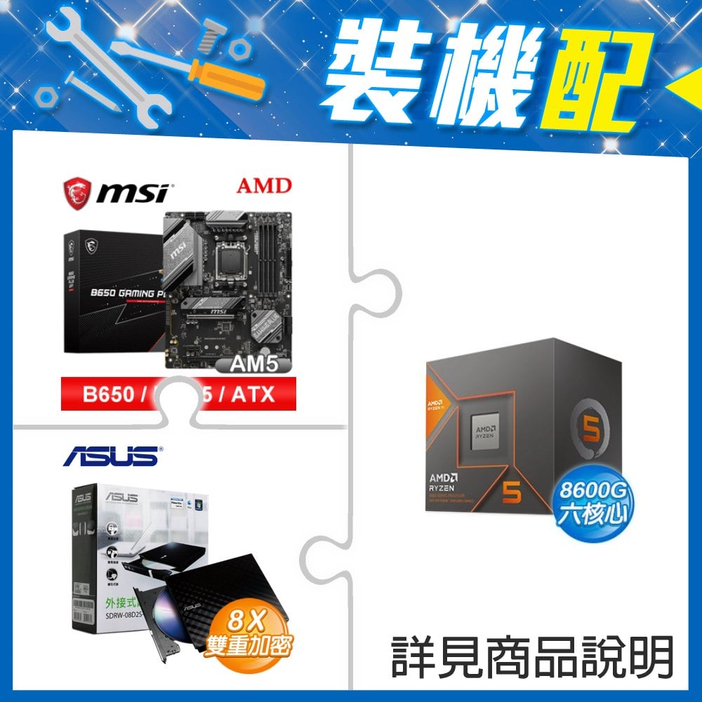 ☆裝機配★ AMD R5 8600G+微星 B650 GAMING PLUS WIFI D5 ATX主機板+華碩 SDRW-08D2S-U 外接式燒錄機《黑》