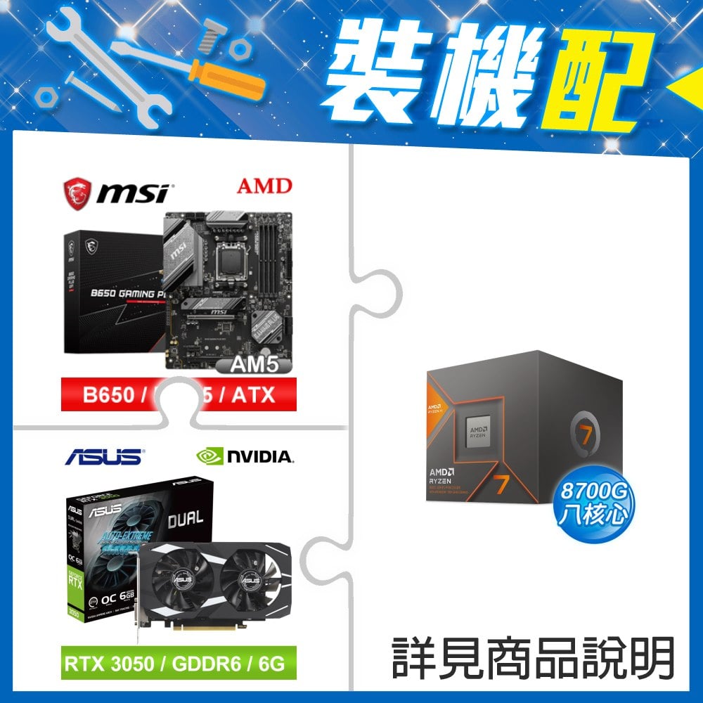 ☆裝機配★ AMD R7 8700G+微星 B650 GAMING PLUS WIFI D5 ATX主機板+華碩 DUAL-RTX3050-O6G 顯示卡