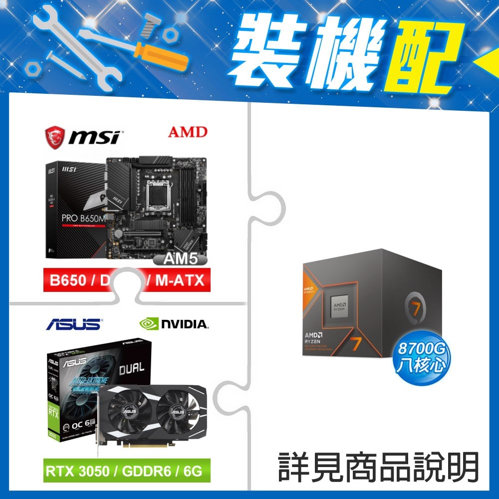 ☆裝機配★ AMD R7 8700G+微星 PRO B650M-A WIFI D5 M-ATX主機板+華碩 DUAL-RTX3050-O6G 顯示卡