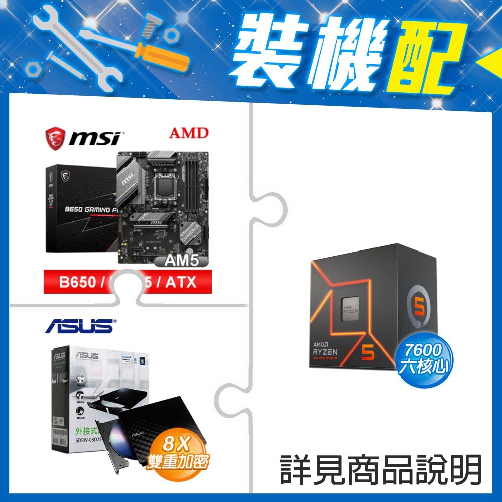 ☆裝機配★ AMD R5 7600+微星 B650 GAMING PLUS WIFI D5 ATX主機板+華碩 SDRW-08D2S-U 外接式燒錄機《黑》