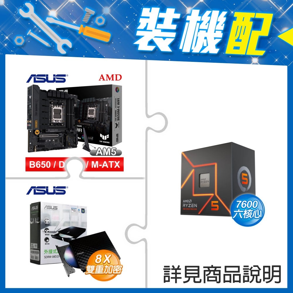 ☆裝機配★ AMD R5 7600+華碩 TUF GAMING B650M-E WIFI D5 MATX主機板+華碩 SDRW-08D2S-U 外接式燒錄機《黑》