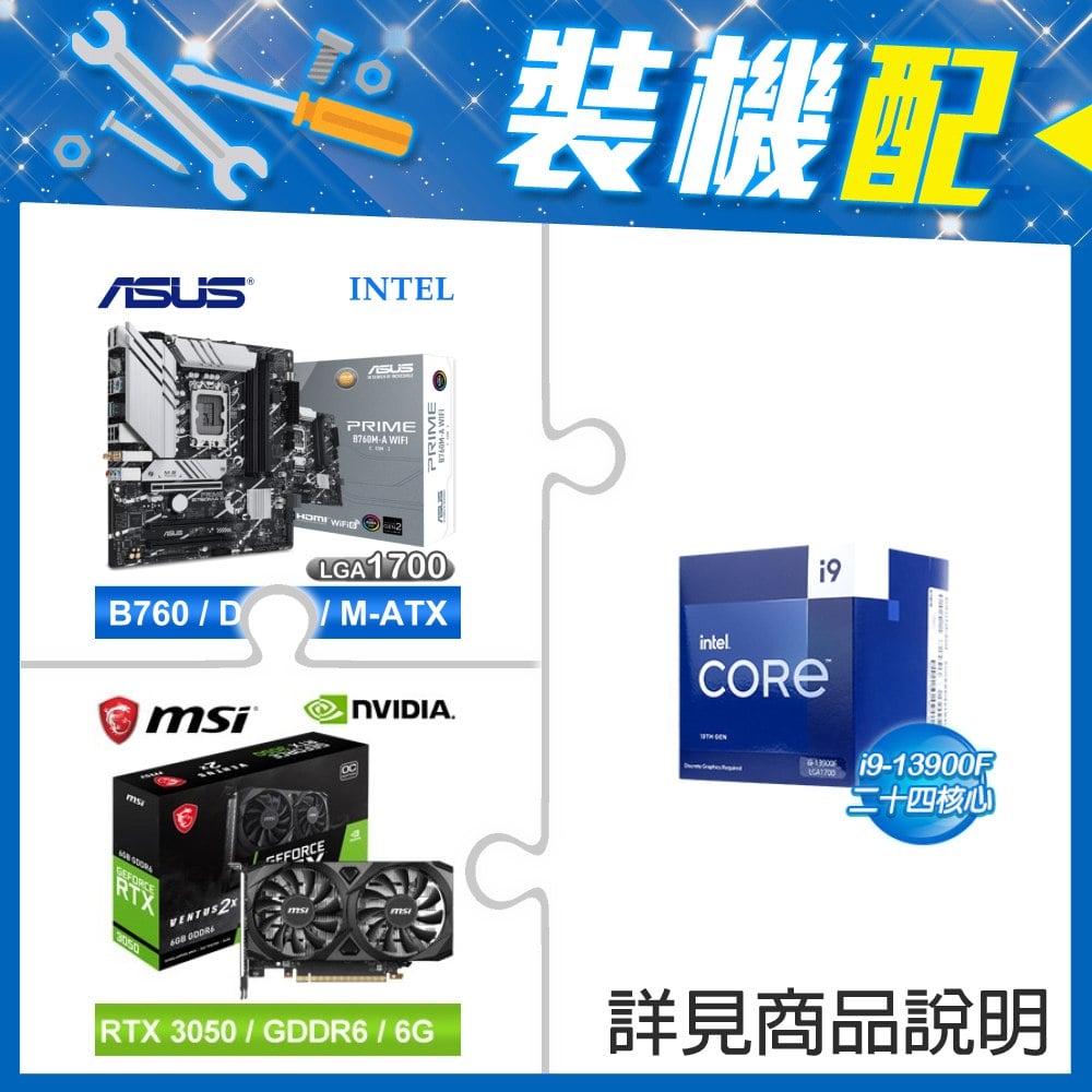 ☆裝機配★ i9-13900F《無內顯》+華碩 PRIME B760M-A WIFI-CSM D5 M-ATX主機板+微星 RTX 3050 VENTUS 2X 6G OC 顯示卡