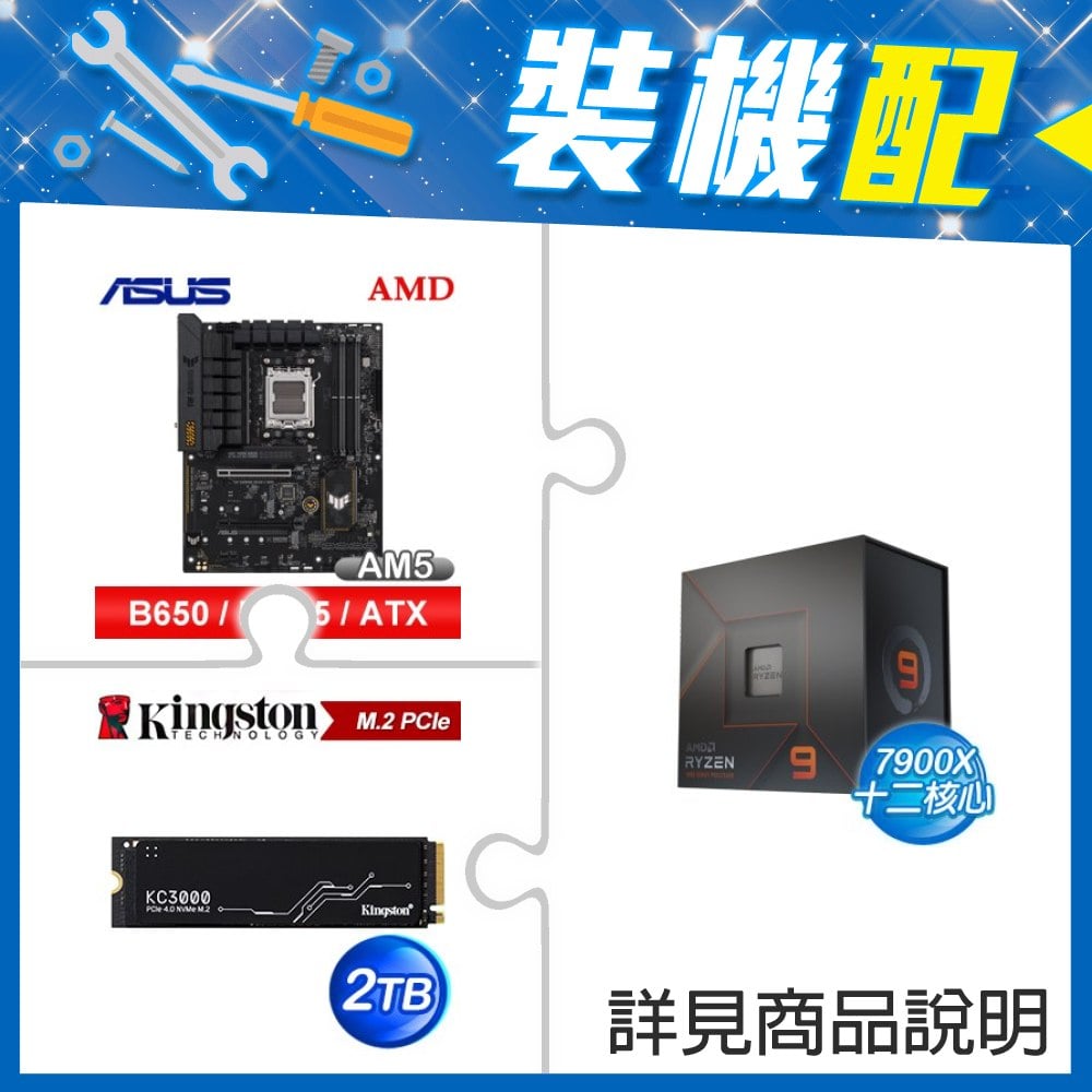 ☆裝機配★ AMD R9 7900X+華碩 TUF GAMING B650-E WIFI ATX主機板+金士頓 KC3000 2TB PCIe 4.0 NVMe M.2 SSD