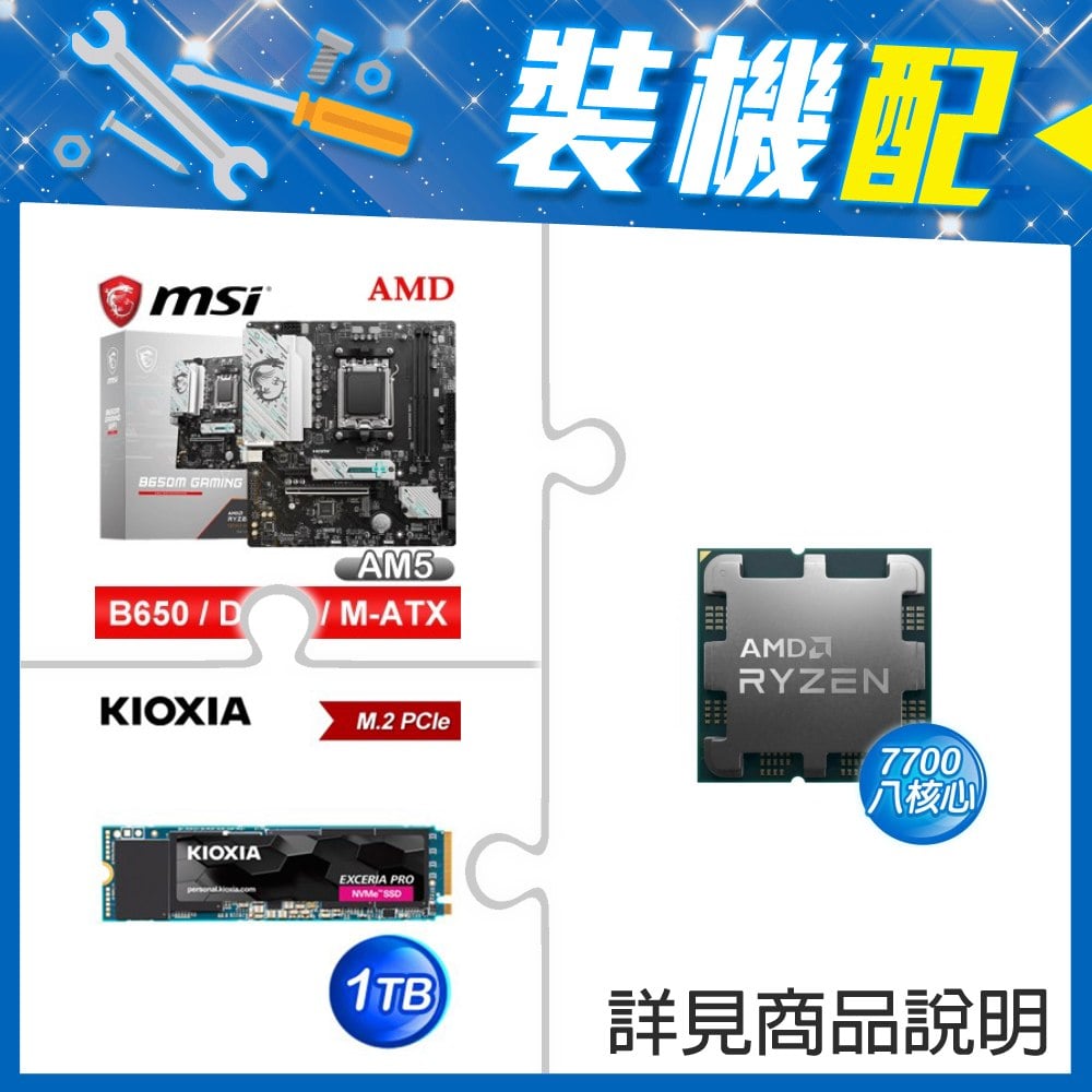 ☆裝機配★ AMD R7 7700 MPK+微星 B650 GAMING PLUS WIFI D5 ATX主機板+鎧俠 EXCERIA PRO 1TB PCIe Gen4x4 SSD