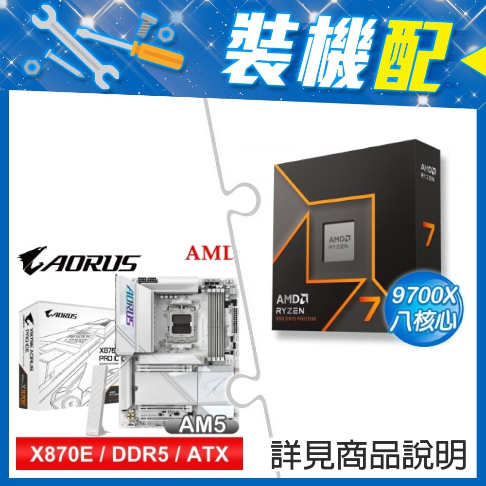 ☆裝機配★ AMD R7 9700X+技嘉 X870E AORUS PRO ICE ATX主機板