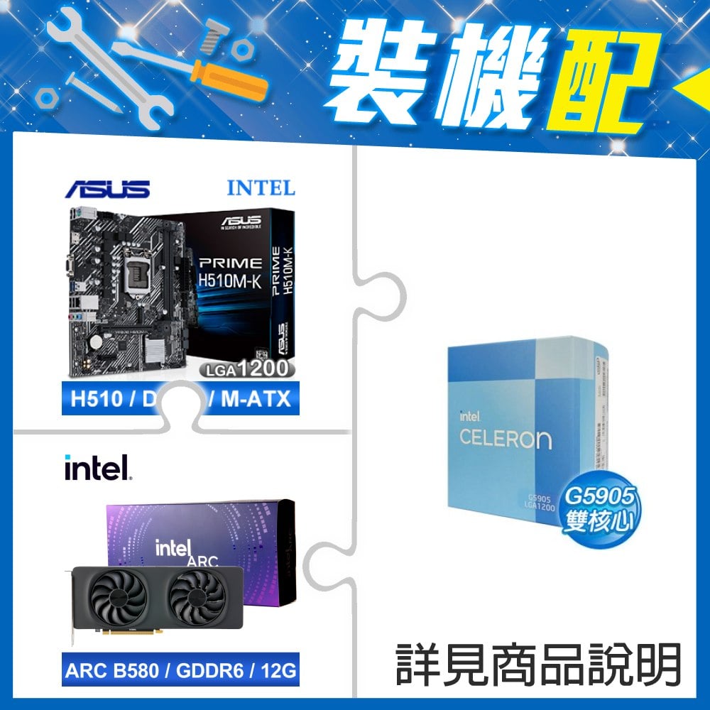 ☆裝機配★ G5905《彩盒全球保》+華碩 PRIME H510M-K M-ATX主機板+Intel Arc B580 12G 20 Core 顯示卡