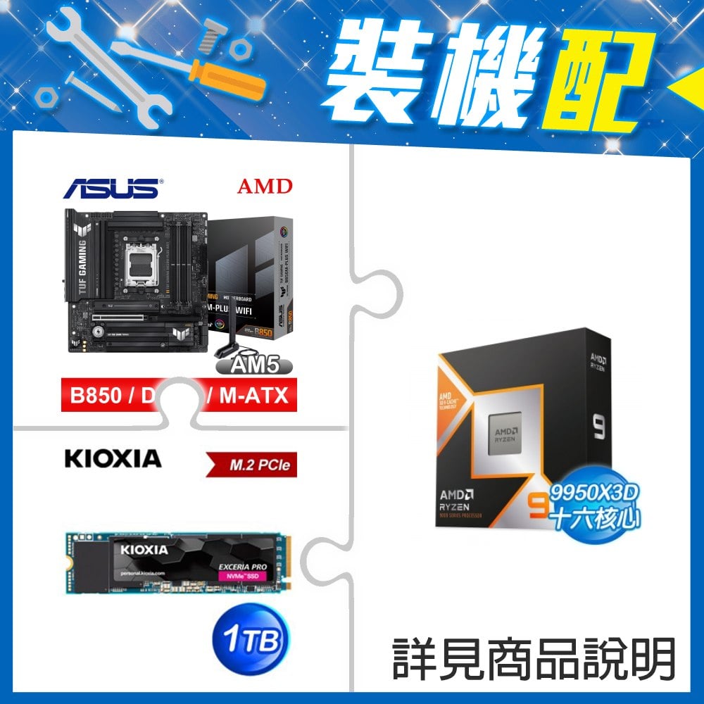 ☆裝機配★ AMD R9 9950X3D+華碩 TUF GAMING B850M-PLUS WIFI MATX主機板+鎧俠 EXCERIA PRO 1TB PCIe Gen4x4 SSD