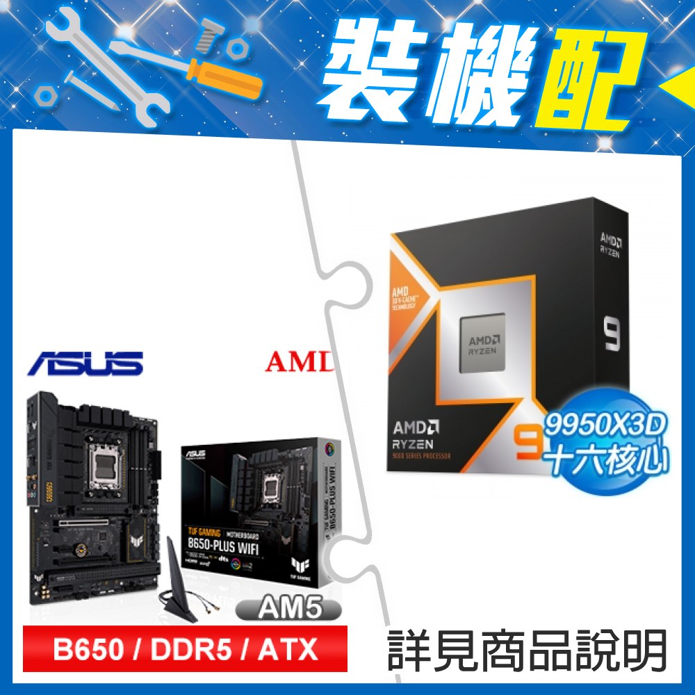 ☆裝機配★ AMD R9 9950X3D+華碩 TUF GAMING B650-PLUS WIFI ATX主機板