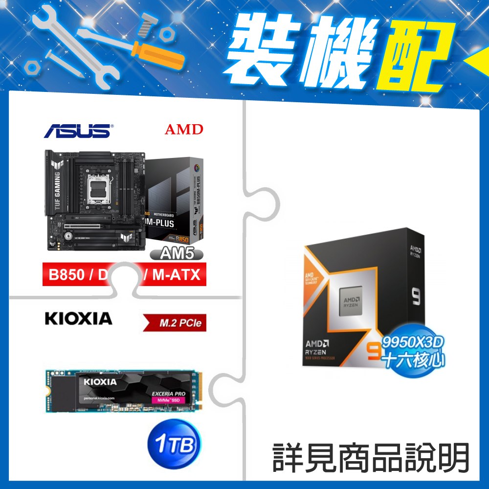☆裝機配★ AMD R9 9950X3D+華碩 TUF GAMING B850M-PLUS WIFI MATX主機板+鎧俠 EXCERIA PRO 1TB PCIe Gen4x4 SSD