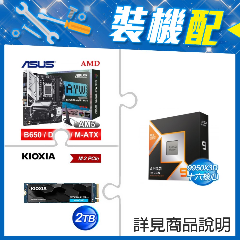 ☆裝機配★ AMD R9 9950X3D+華碩 B650M-AYW WIFI MATX主機板+鎧俠 EXCERIA PLUS G3 2TB PCIe Gen4x4 SSD