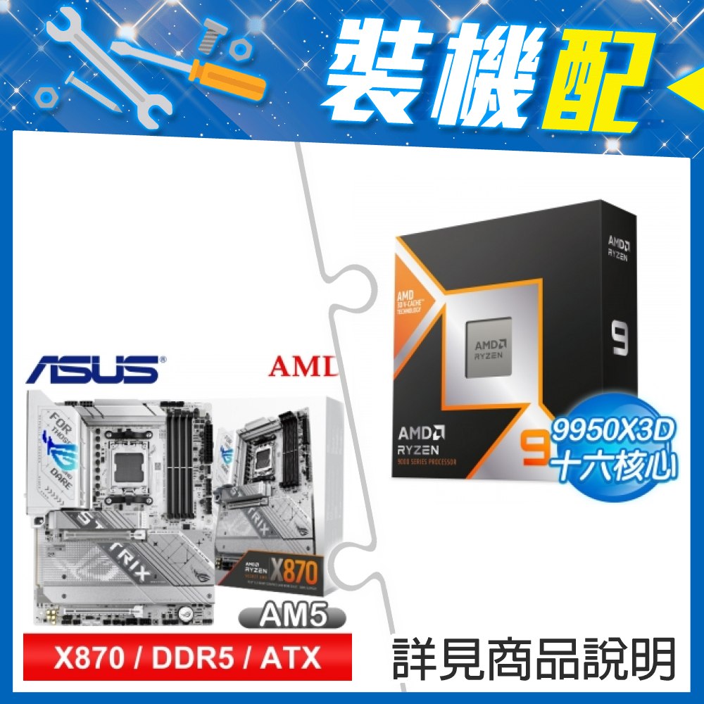 ☆裝機配★ AMD R9 9950X3D+華碩 ROG STRIX X870-A GAMING WIFI ATX主機板