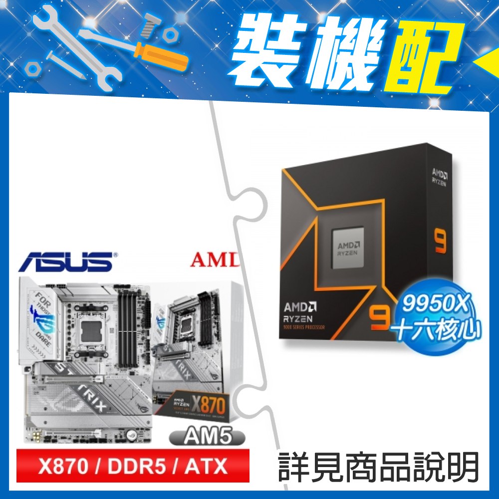 ☆裝機配★ AMD R9 9950X+華碩 ROG STRIX X870-A GAMING WIFI ATX主機板