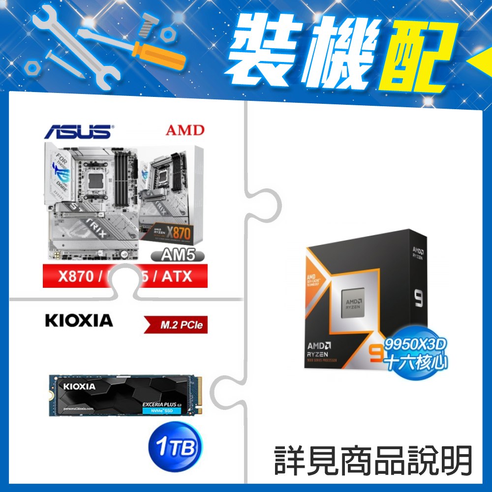 ☆裝機配★ AMD R9 9950X3D+華碩 ROG STRIX X870-A GAMING WIFI ATX主機板+鎧俠 EXCERIA PLUS G3 1TB PCIe Gen4x4 SSD