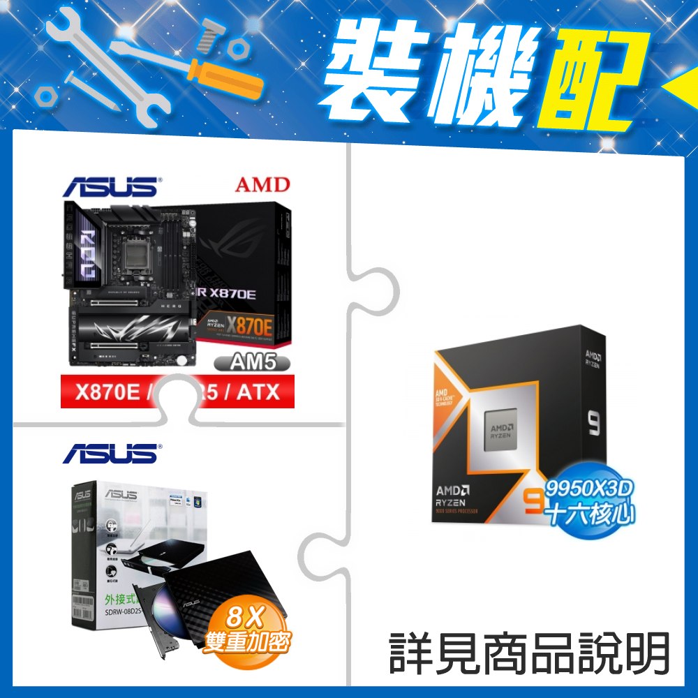 ☆裝機配★ AMD R9 9950X3D+華碩 ROG CROSSHAIR X870E HERO ATX主機板+華碩 SDRW-08D2S-U 外接式燒錄機《黑》