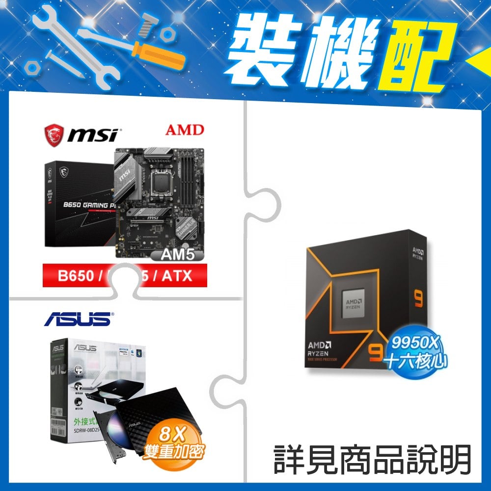 ☆裝機配★ AMD R9 9950X+微星 B650 GAMING PLUS WIFI D5 ATX主機板+華碩 SDRW-08D2S-U 外接式燒錄機《黑》