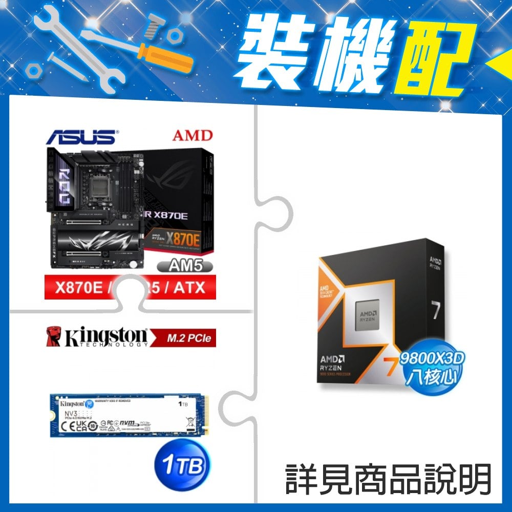 ☆裝機配★ AMD R7 9800X3D+華碩 ROG CROSSHAIR X870E HERO ATX主機板+金士頓 NV3 1TB M.2 PCIe SSD