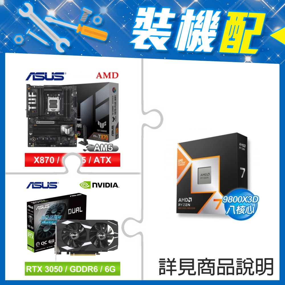 ☆裝機配★ AMD R7 9800X3D+華碩 TUF GAMING X870-PLUS WIFI ATX主機板+華碩 DUAL-RTX3050-O6G 顯示卡