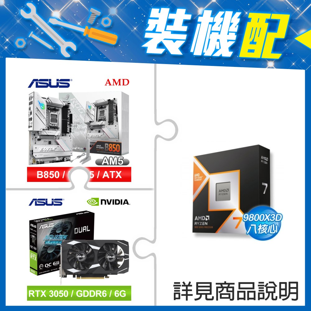 ☆裝機配★ AMD R7 9800X3D+華碩 ROG STRIX B850-A GAMING WIFI ATX主機板+華碩 DUAL-RTX3050-O6G 顯示卡