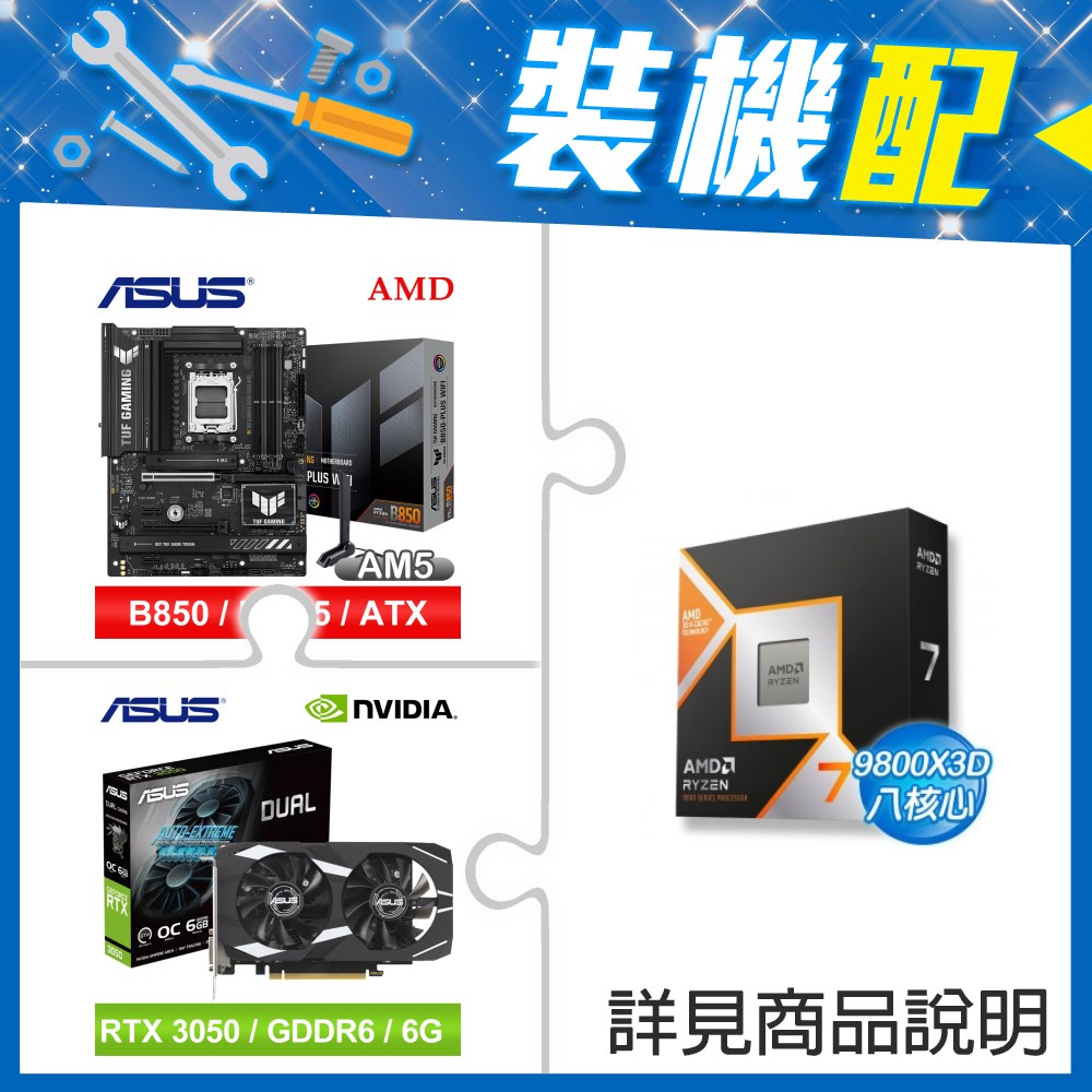 ☆裝機配★ AMD R7 9800X3D+華碩 TUF GAMING B850-PLUS WIFI ATX主機板+華碩 DUAL-RTX3050-O6G 顯示卡