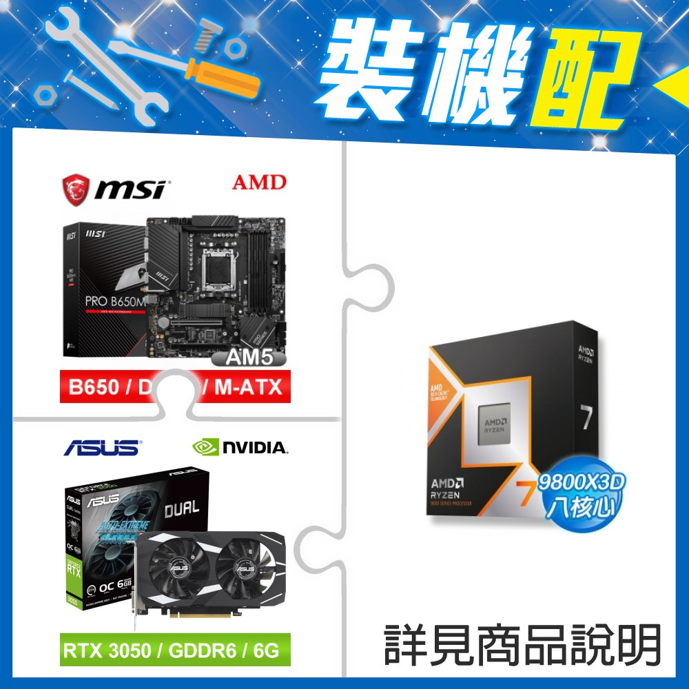 ☆裝機配★ AMD R7 9800X3D+微星 PRO B650M-A WIFI D5 M-ATX主機板+華碩 DUAL-RTX3050-O6G 顯示卡