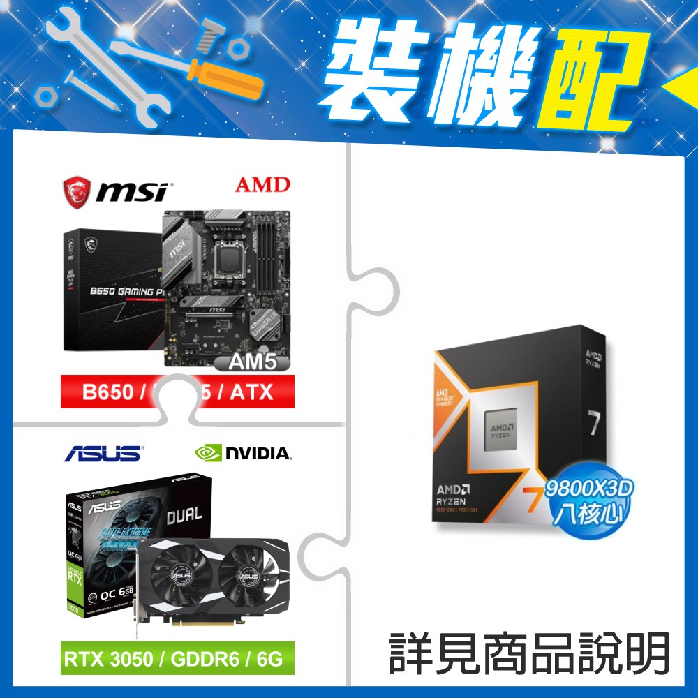 ☆裝機配★ AMD R7 9800X3D+微星 B650 GAMING PLUS WIFI D5 ATX主機板+華碩 DUAL-RTX3050-O6G 顯示卡