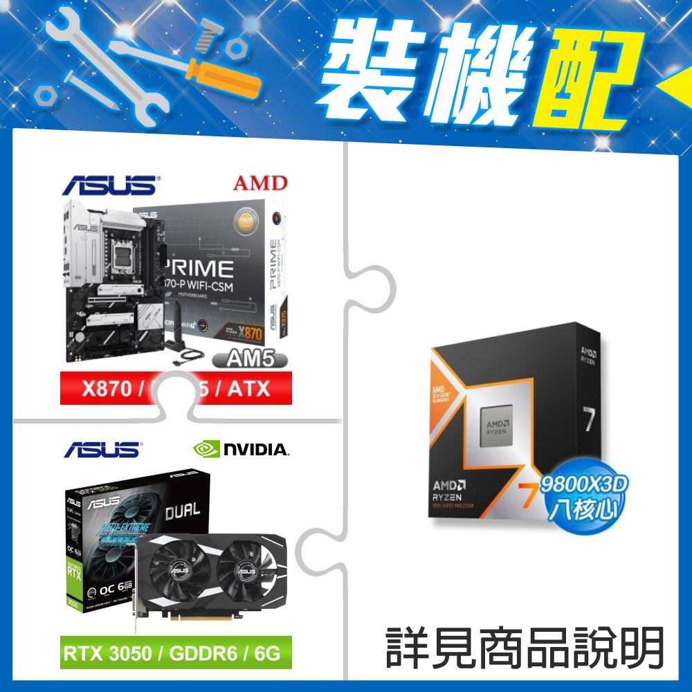 ☆裝機配★ AMD R7 9800X3D+華碩 PRIME X870-P WIFI-CSM ATX主機板+華碩 DUAL-RTX3050-O6G 顯示卡