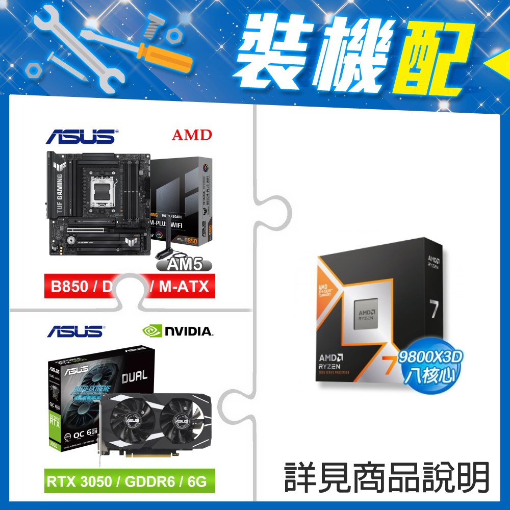 ☆裝機配★ AMD R7 9800X3D+華碩 TUF GAMING B850M-PLUS WIFI MATX主機板+華碩 DUAL-RTX3050-O6G 顯示卡