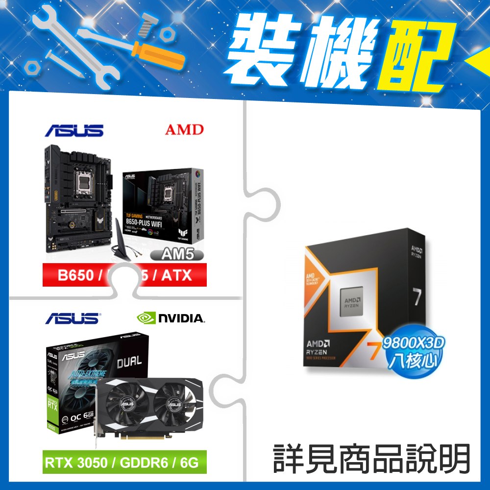 ☆裝機配★ AMD R7 9800X3D+華碩 TUF GAMING B650-PLUS WIFI ATX主機板+華碩 DUAL-RTX3050-O6G 顯示卡