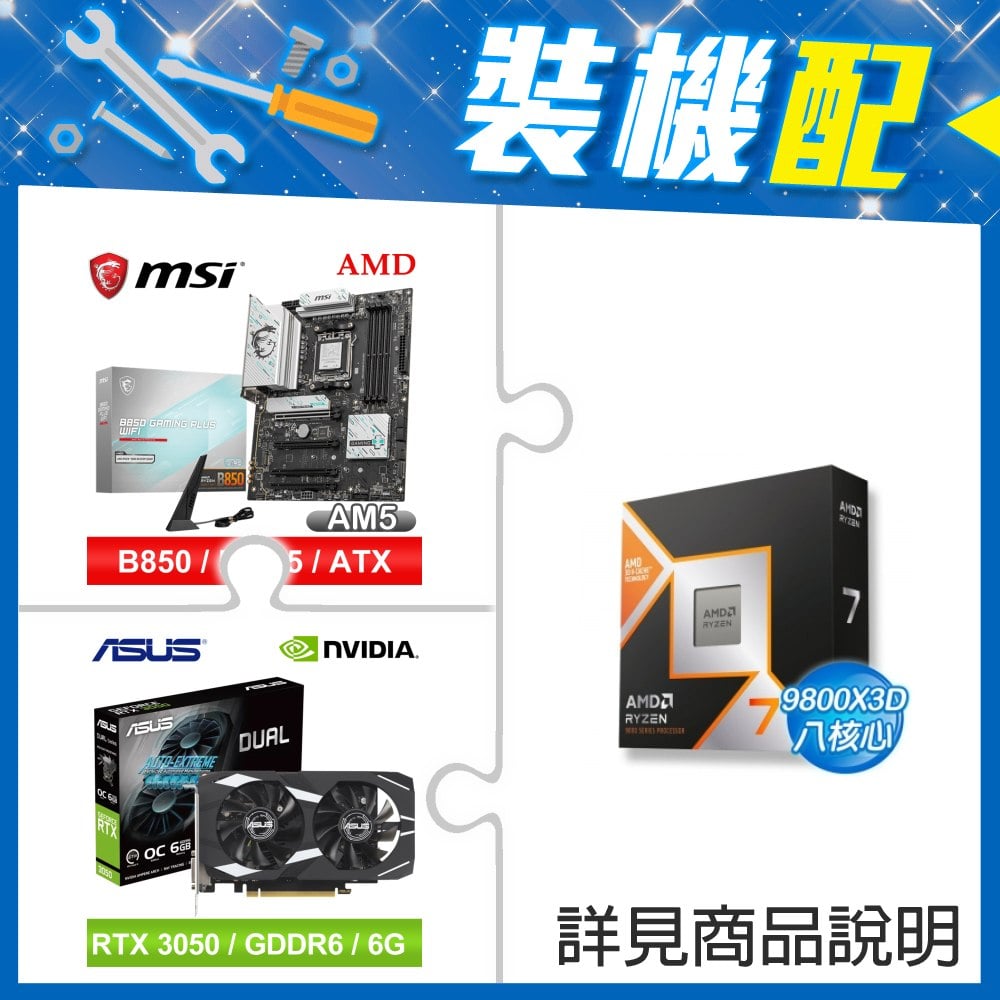 ☆裝機配★ AMD R7 9800X3D+微星 B850 GAMING PLUS WIFI ATX主機板+華碩 DUAL-RTX3050-O6G 顯示卡
