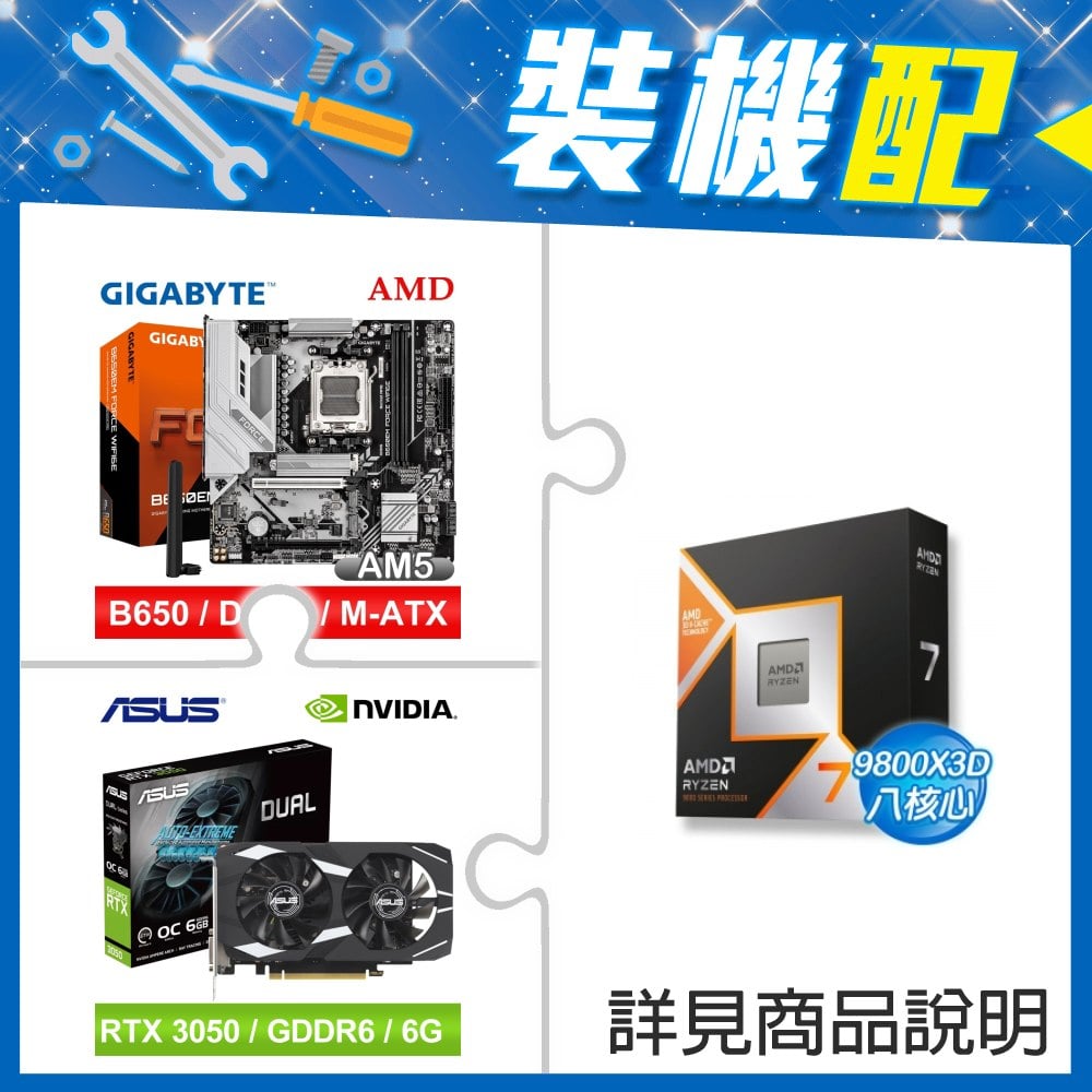 ☆裝機配★ AMD R7 9800X3D+技嘉 B650EM FORCE WIFI6E MATX主機板+華碩 DUAL-RTX3050-O6G 顯示卡