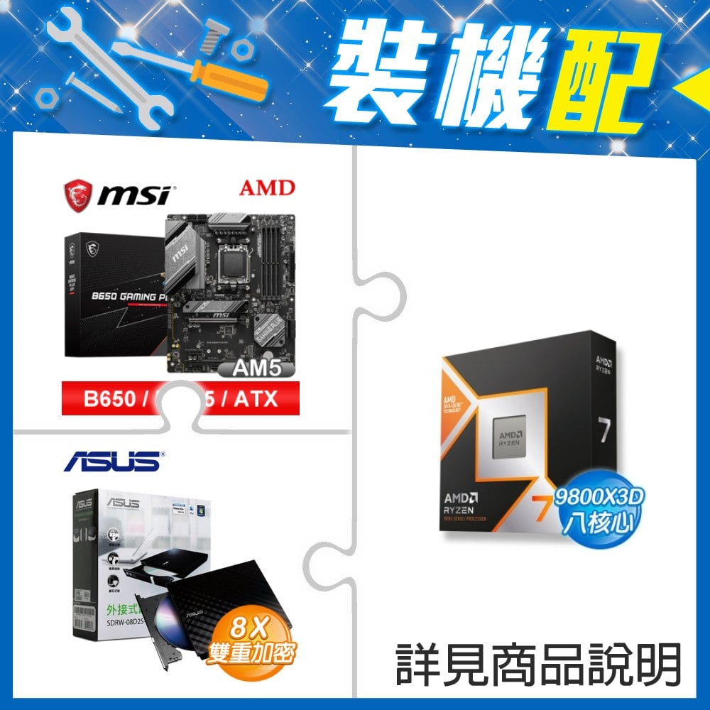 ☆裝機配★ AMD R7 9800X3D+微星 B650 GAMING PLUS WIFI D5 ATX主機板+華碩 SDRW-08D2S-U 外接式燒錄機《黑》