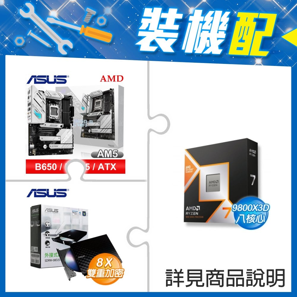 ☆裝機配★ AMD R7 9800X3D+華碩 ROG STRIX B650-A GAMING WIFI ATX主機板+華碩 SDRW-08D2S-U 外接式燒錄機《黑》