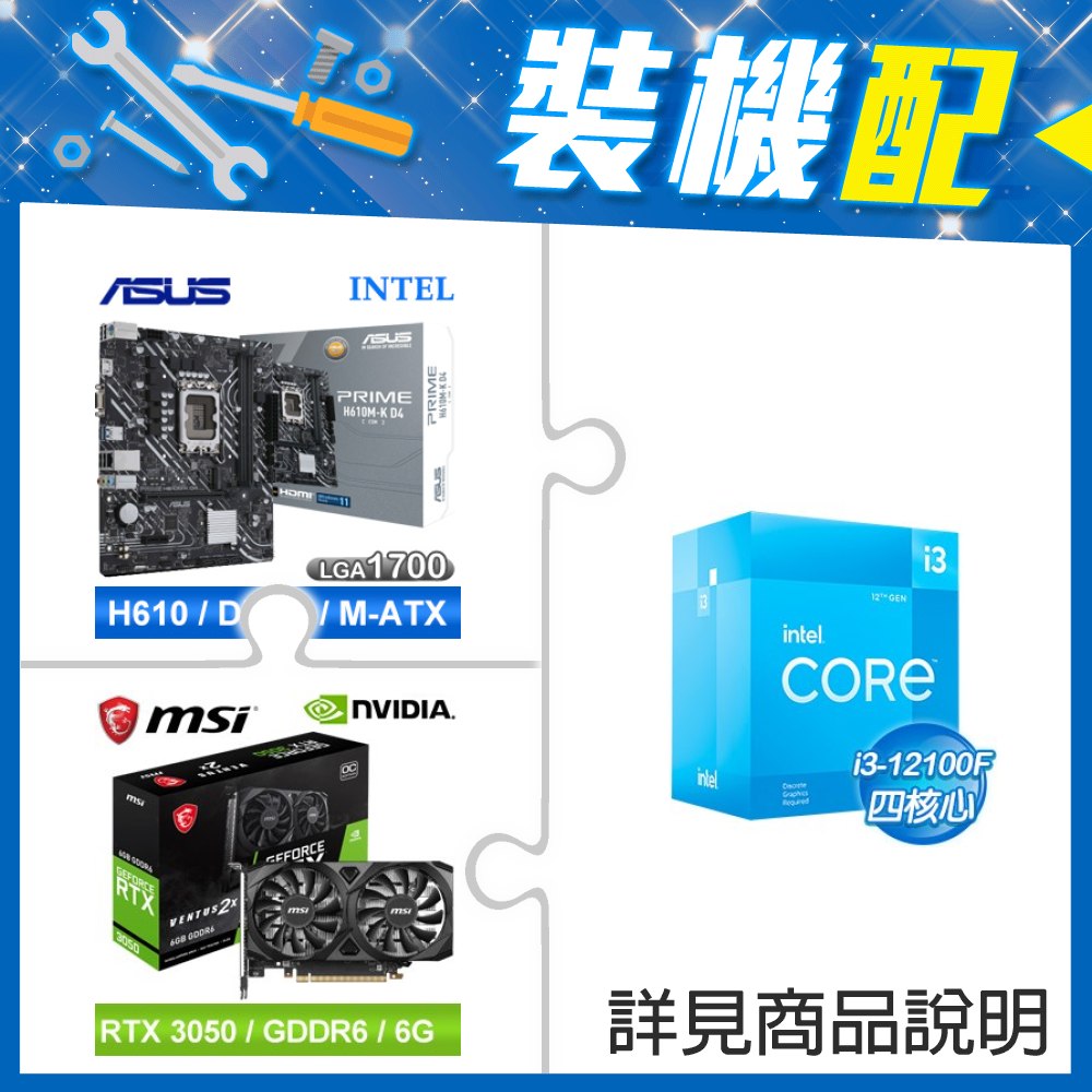 ☆裝機配★ i3-12100F+華碩 PRIME H610M-K D4-CSM M-ATX主機板+微星 RTX 3050 VENTUS 2X 6G OC 顯示卡