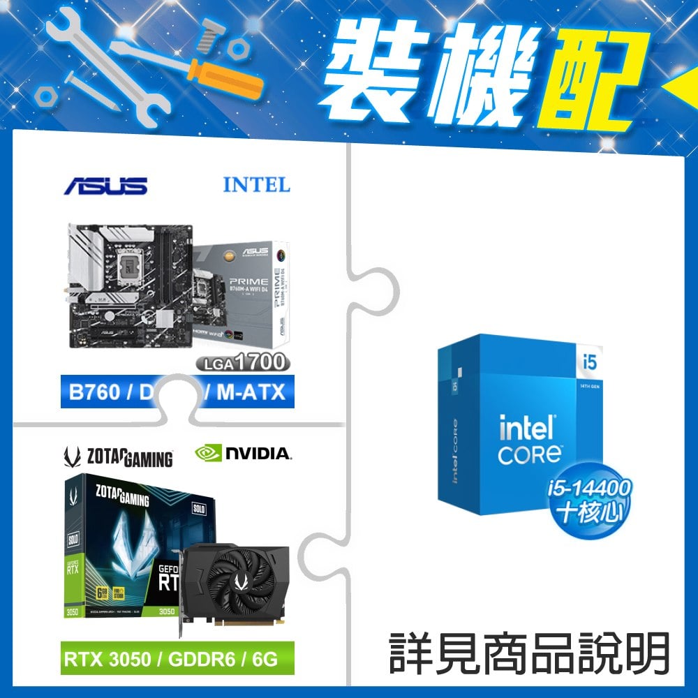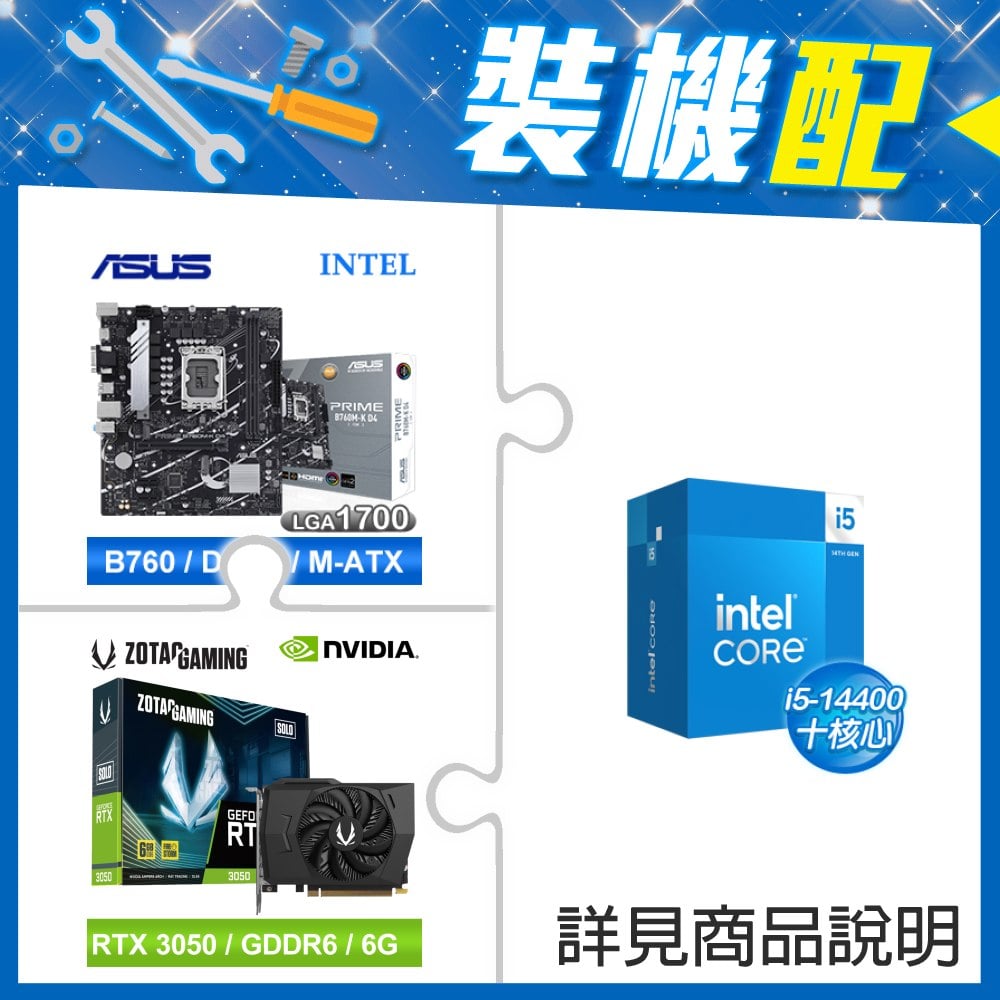☆裝機配★ i5-14400+華碩 PRIME B760M-K D4-CSM 主機板+ZOTAC RTX3050 6G GDDR6 Solo 顯示卡